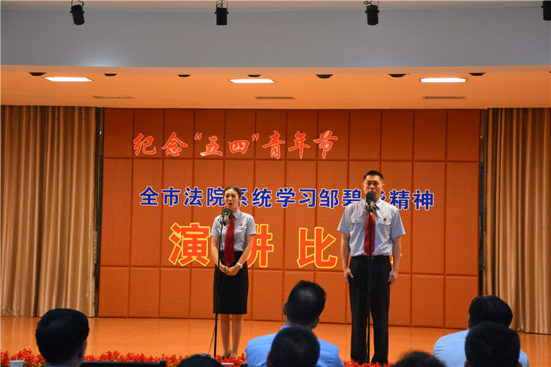4月29日下午,沙市法院组织干警在市中院参加纪念“五四”青年节暨全市法院系统学习邹碧华精神演讲比赛,我院参赛选手毛冰超、舒学婧两位同志,以慷慨激昂的演讲感染了台下评委及听众,从众多参赛选手中脱颖而出,取得第二名的好成绩,为沙市法院争得了荣誉。政治处主任夏继亚同志带队,组织青年干警为参赛选手加油助威。
